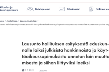 Tutustu suunnitellun hankintalain murskakritiikkiin Lausuntopalvelussa.