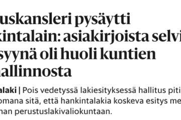 - Useiden selvitysten mukaan hankintalakiesitys on perustuslain vastainen. Tähän ovat kunnat useassa yhteydessä vedonneet, turhaan.